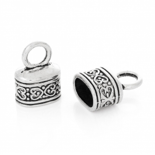 eindkap bewerkt Zilver antiek metaal 18x13mm geschikt voor koord 10x6mm rijggat 5.5mm nikkelvrij-pstk