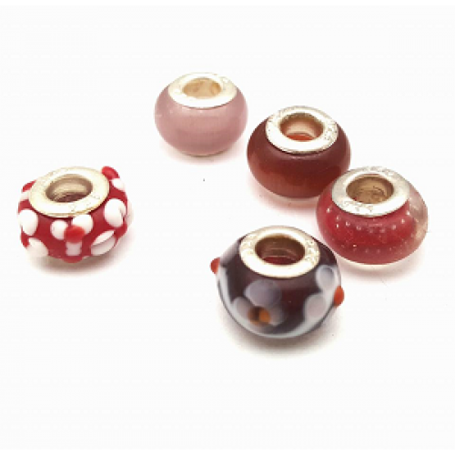 Lampwork glas kralen met verzilverde kern 925 t.b.v.