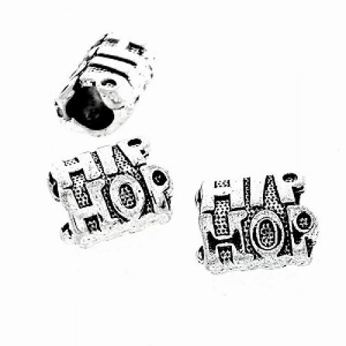 Antiek zilveren metalen kraal - Hip Hop met groot gat afmeting: 14 x 10 mm - gat 4.7 mm nikkelvrij - per stuk