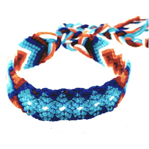 Hand gemaakte Armband of Enkelbandje stoffen wordt geknoopt - 1.3 cm hoog 39cm lang Blauw/Wit/Oranje/Bordeaux
