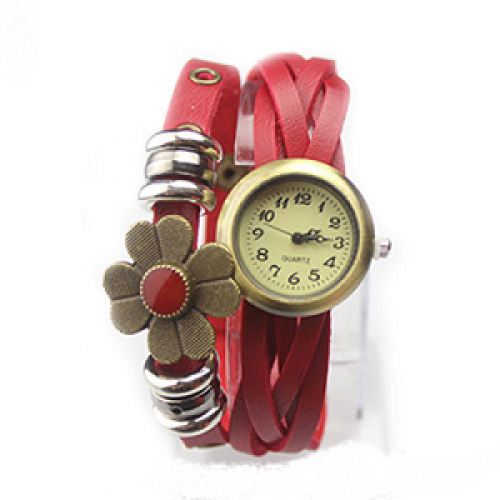 Horloge met pu lederen band - drukknopen
