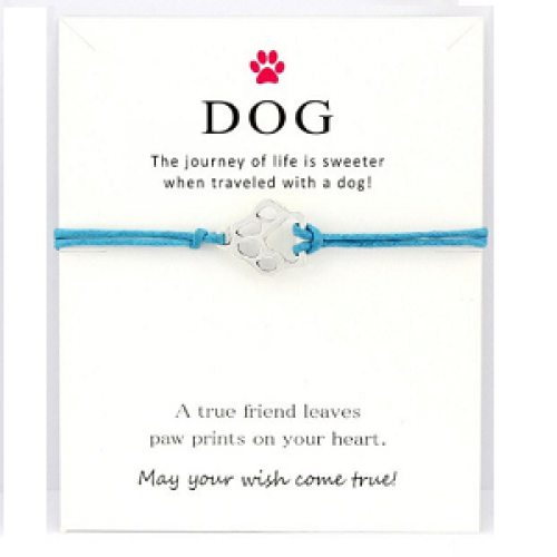 Kado kaart met armband Honden poot zilvermetaal