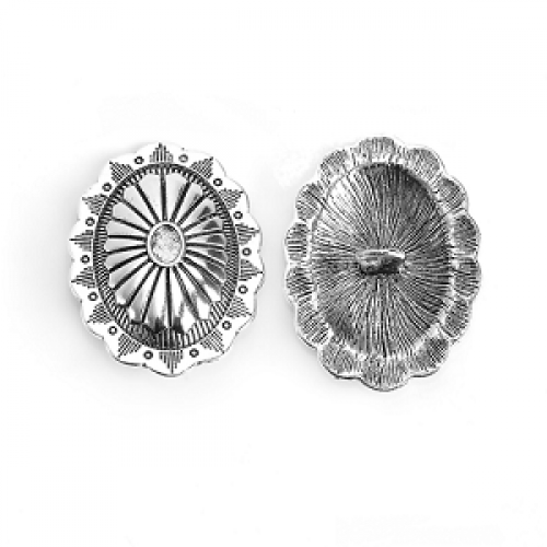 Knoop - zilveren metaal - tibetan - let op !! Groot model afmeting: 44 x 34 mm - gat 4 mm nikkelvrij - per stuk