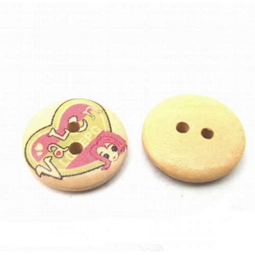 Knoop hout - met print hart - 20 mm doorsnede 2 gaten