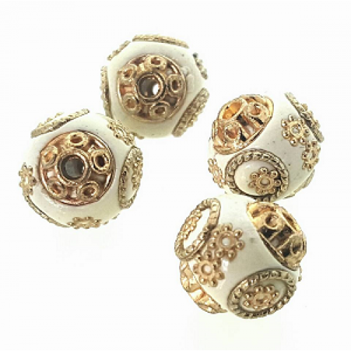 Kraal - Indonesie handmade off-white - gebroken wit met goud afmeting: 14 x 16 mm - gat 3 mm nikkelvrij per stuk