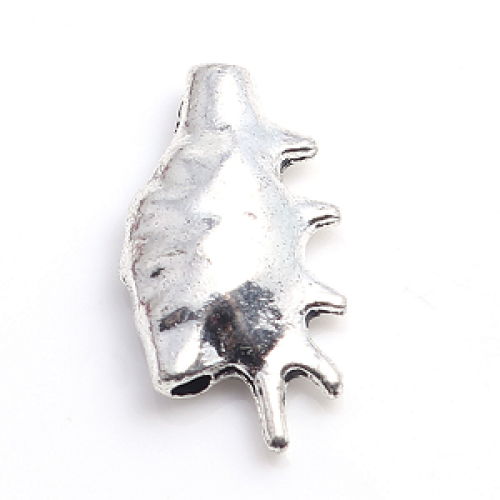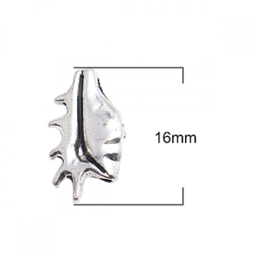 Zilveren Metalen kraal - Spacer - Conch Schelp afmeting : 16 x 9 mm - rijggat 1mm nikkelvrij - per stuk