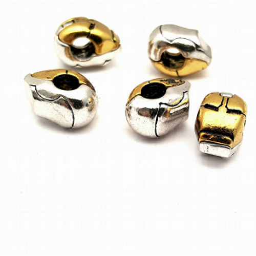 Goud/zilveren metalen kraal met groot gat 4,5 mm