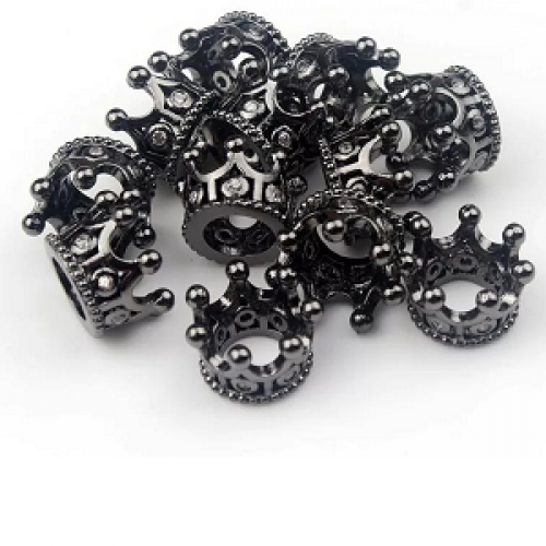 Kraal Zirkonia Kroon Gun Black met Clear stenen Hoogwaardig metaal 10x7mm rijggat 4mm nikkelvrij-pstk