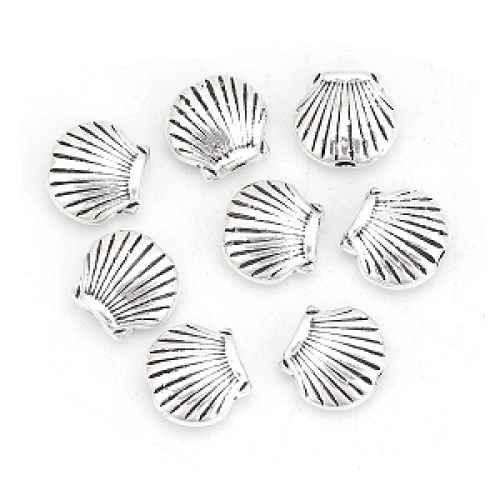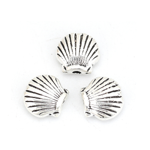 Zilveren metalen kraal - Spacer- tussenkraal Schelp- afmeting : 9 x 8 mm - rijggat 1.3 mm nikkelvrij - per stuk