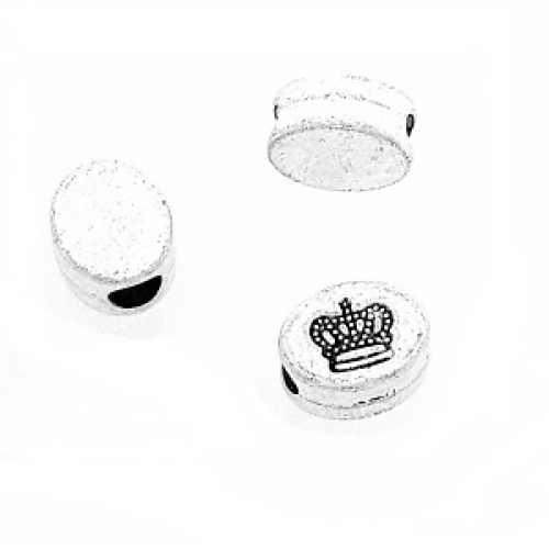 Kraal groot gat ovaal met Kroon afmeting: 11 x 9 mm - gat 4 mm zilverkleur metaal nikkelvrij - per stuk