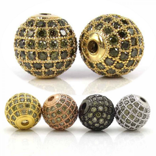 Kraal - rond - hoogwaardig metaal - goud kleur - ingezet met zwart zirkonia's