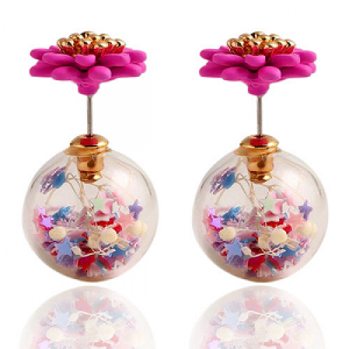Dubbele bloem oorbellen fimo met glitter-ster