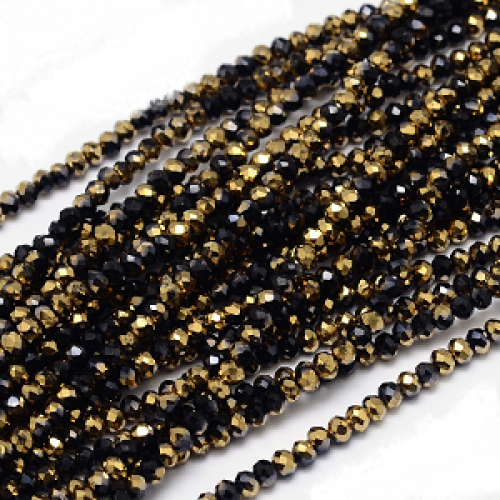 Glaskralen Facet rondelle 3mm zwart/goud