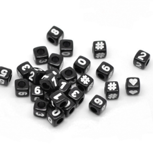 Kralen Zwart wit Acryl Kubus