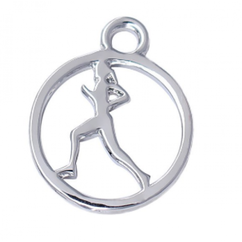 Zilver metaal rond bedel van Rennend Meisje/Vrouw afmeting: 25 x 18 mm - gat 3 mm nikkel lood vrij - per stuk