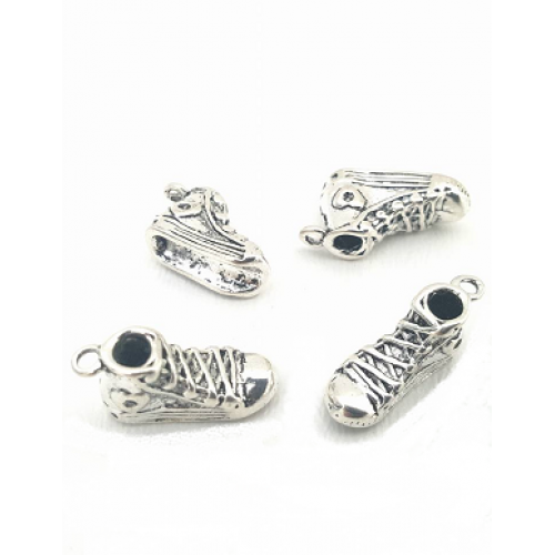 Bedel metaal zilverkleur van Sportschoen/ Basketbal afmeting: 21x7x9mm - gat 1.5 mm nikkelvrij per stuk