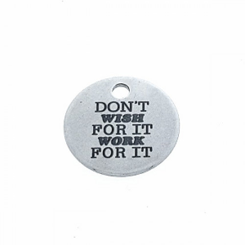 Stainless steel Bedel rond 20mm met gat 2mm tekst : Don't wish for it work for it nikkel lood vrij - per stuk