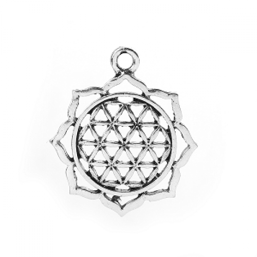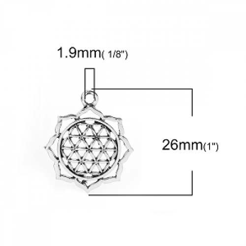 Antiek zilveren metalen Bedel - Flower of Life afmeting: 26 x 22 mm - gat 1.9 mm nikkelvrij - per stuk