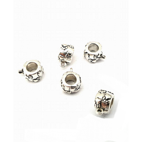 Zilveren metalen kraal met oog voor hanger Hondenpoot 11 x 9 mm gat 4mm geschikt voor paracord nikkelvrij per stuk