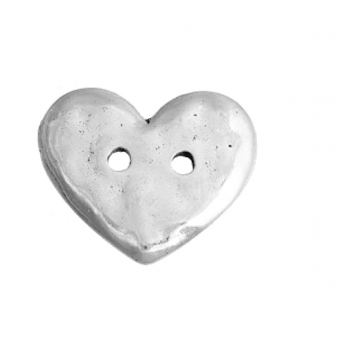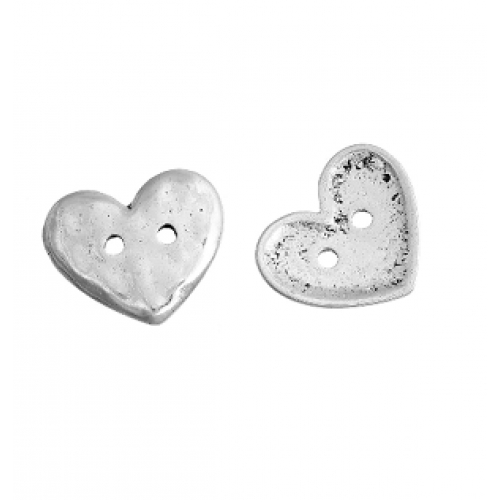 Knoop - Hammered - Hamerslag - Hart - 2 gaten afmeting : 19 x 16 mm - gaten 1 mm nikkelvrij - per stuk