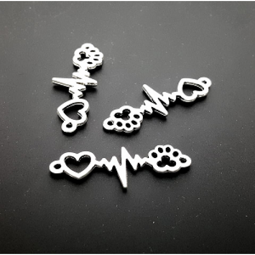Verzilverden tussenstuk 2 ogen Hondenpoot Blikem Hart afmeting : 34 x 12 mm - rijggaten 1 mm nikkelvrij per stuk