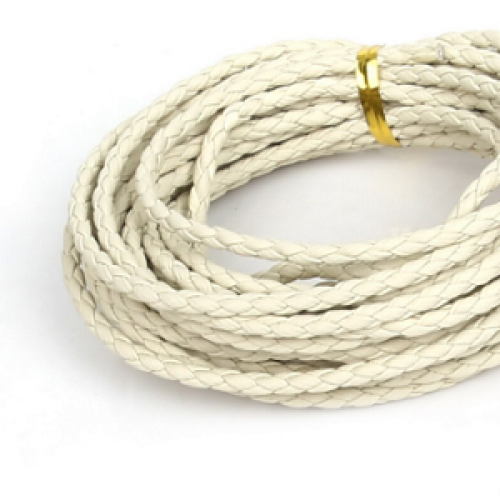 Kunstleer 3mm gevlochten Off White