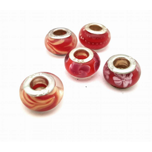 Lampwork glas kralen met verzilverde kern 925 gat 4mm