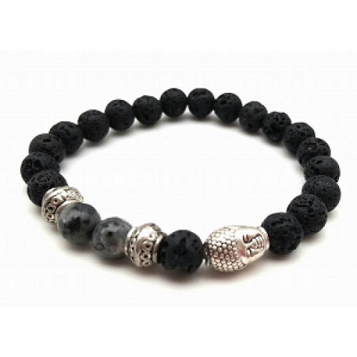Lava -steen armband 8mm kralen met edelsteen Labodorite en Tibetaans zilveren