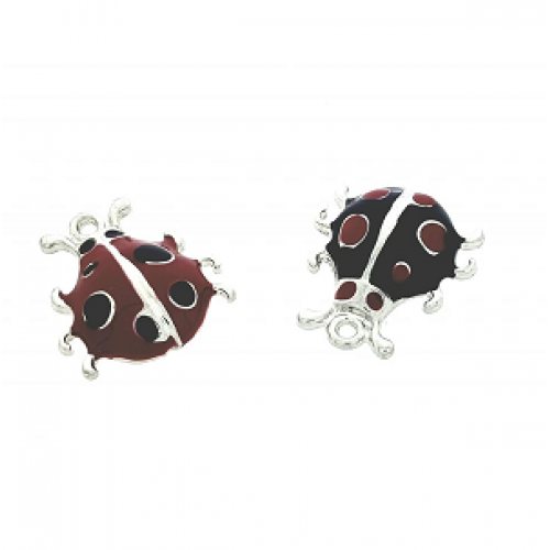 Zilveren metalen bedel - Lieveheersbeestje- Epoxy- Emaile