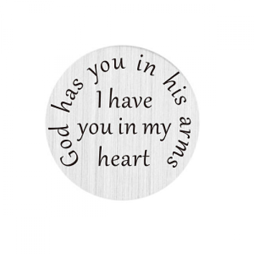 Locket - Memory Disc- 22mm doorsnede rvs - met tekst : God have you in his arms , I have you in my heart