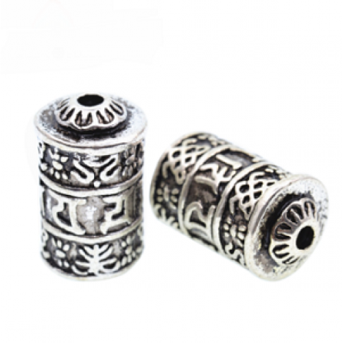 Antiek metaal tibetaans zilveren kraal - Gebedsmolen