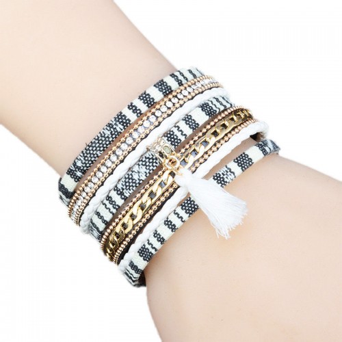 Armband - meer lagen - in 1 - stof - pu lederen - kristallen kwastje