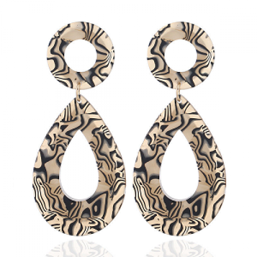 Oorbellen - Drops - Acetate - Kaki/Beige/zwart