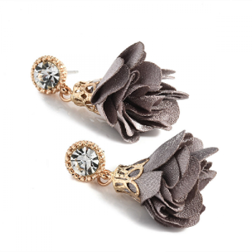 Oorbellen- goud - metaal - hangers - Met zijden bloem en crystal clear