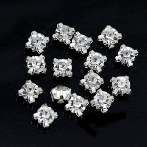 Verzilverde metalen kraal -cup - met facet crysal - rhinestone- voor op te naaien