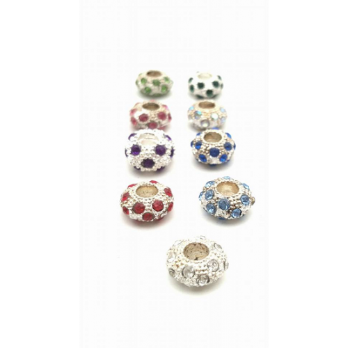 Zilverkleur metalen kralen met strass -stenen