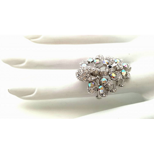 18 krt White goldplated ring bezet met Clear en AB Swarovksi kristallen PAUW size verstelbaar NIkkelvrij