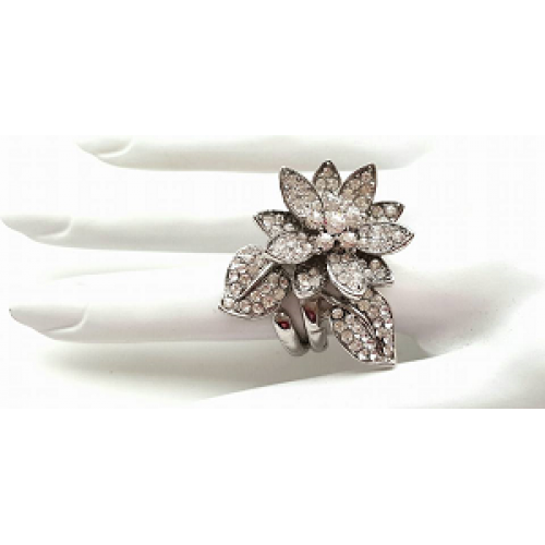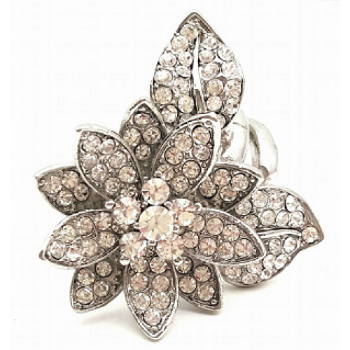 18 krt White Goldplated Ring - Bloem bezet met Swarovski kristallen