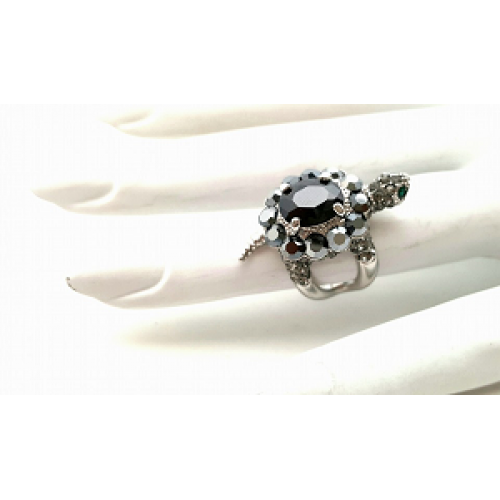 18 krt white goldplated ring bezet met Swarovski kristalen kleur Zwart en zwart AB Schildpad size 16 nikkelvrij
