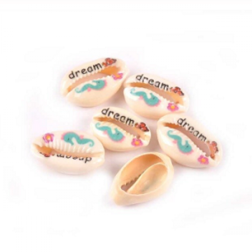 Schelp Kauri Natuurproduct Tussenstuk - kraal - bedel ongeveer afmeting 20x12mm - per stuk tekst: Dream