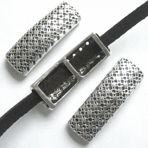 Schuiver - langwerpig - uitgewerkte bloemen afmeting: 40 x 15 mm - uitsparing : 10 x 2 mm nikkelvrij - per stuk
