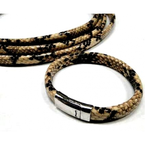 Echt leder - Slang print - bruin-beige-donkerbruin