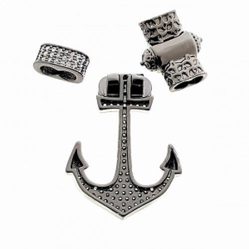 Sluiting van hoogwaardig metaal - gun black ingezet met Zirkonia afmeting: 23 x 35 mm - gat 3 mm - nikkelvrij per stuk