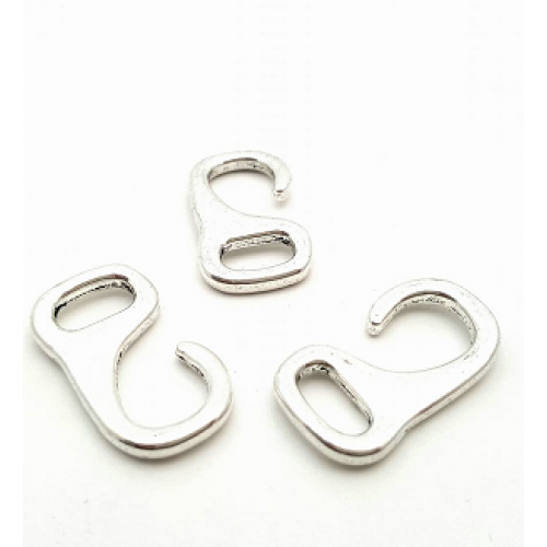 Zilveren metalen sluiting Haak - bv. voor paracord armband of anders afmeting: 3.4 cm lang x 2 cm breed nikkelvrij