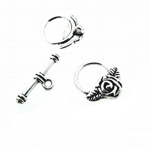 Sluiting - metaal zilveren - Roos - Bloem staafje 14 mm - gat 1mm - rondje - 20 mm - gat 1mm nikkelvrij per set