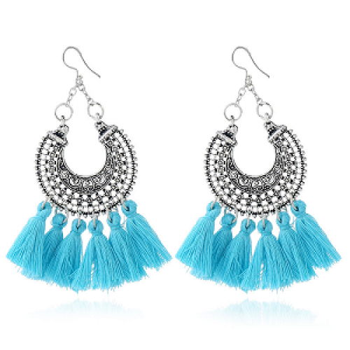 Tibetaan zilveren metalen oorbellen met stoffen kwastjes