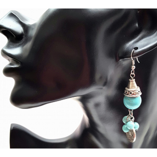 Tibetaans zilveren metalen oorbellen met edelsteen Turqoise