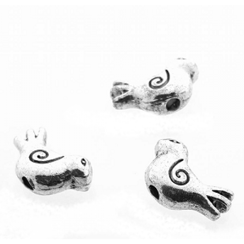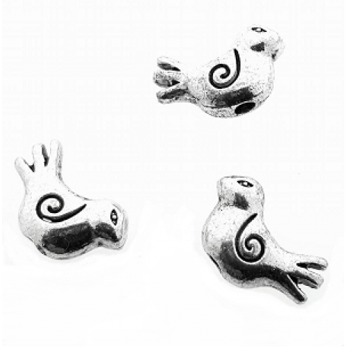 Spacer - Tussenkraal - Vogel - zilveren metaal tibetan - massief 3D