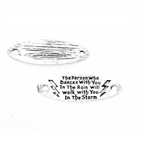 Metalen zilveren tussenstuk bedel - met 2 ogen en tekst: