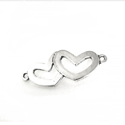 Metaal zilveren tussenstuk 2 ogen Dubbel Hart - afmeting : 41 x 16 mm - rijggaten 2mm nikkelvrij - per stuk